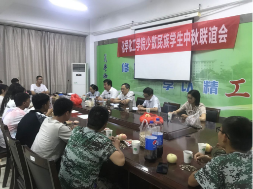 为了解关心少数民族新生学生的学习和生活情况,加强与少数民族学生的情感交流。9月12日晚上,在中秋佳节前夕,化学化工学院召开“少数民族学生中秋联谊会”。化工学院院长奚新国、党委书记谢毅敏、党委副书记江滔、学工办主任赵迎华、团委书记李慧和13位少数民族学生参加了此次联谊会。