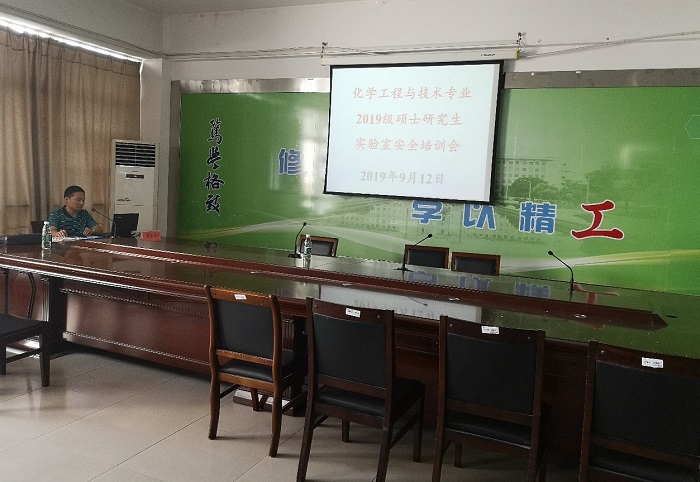 9月12日下午,在化学化工学院201会议室召开了硕士研究生实验室安全培训会。2019级Y化工191班全体研究生与化学化工学院全体联合培养研究生参加本次培训会。培训大会由化学化工学院实验中心主任冒爱荣主讲。