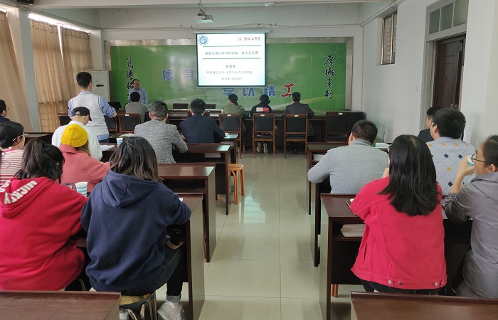 11月5日下午,在北校区化工学院201会议室,我校邀请华东理工大学张金龙教授作题为“新型光催化材料的制备、表征及其应用”的学术报告。化学化工学院院长奚新国教授主持报告,化工学院、材料学院师生60多人聆听报告。