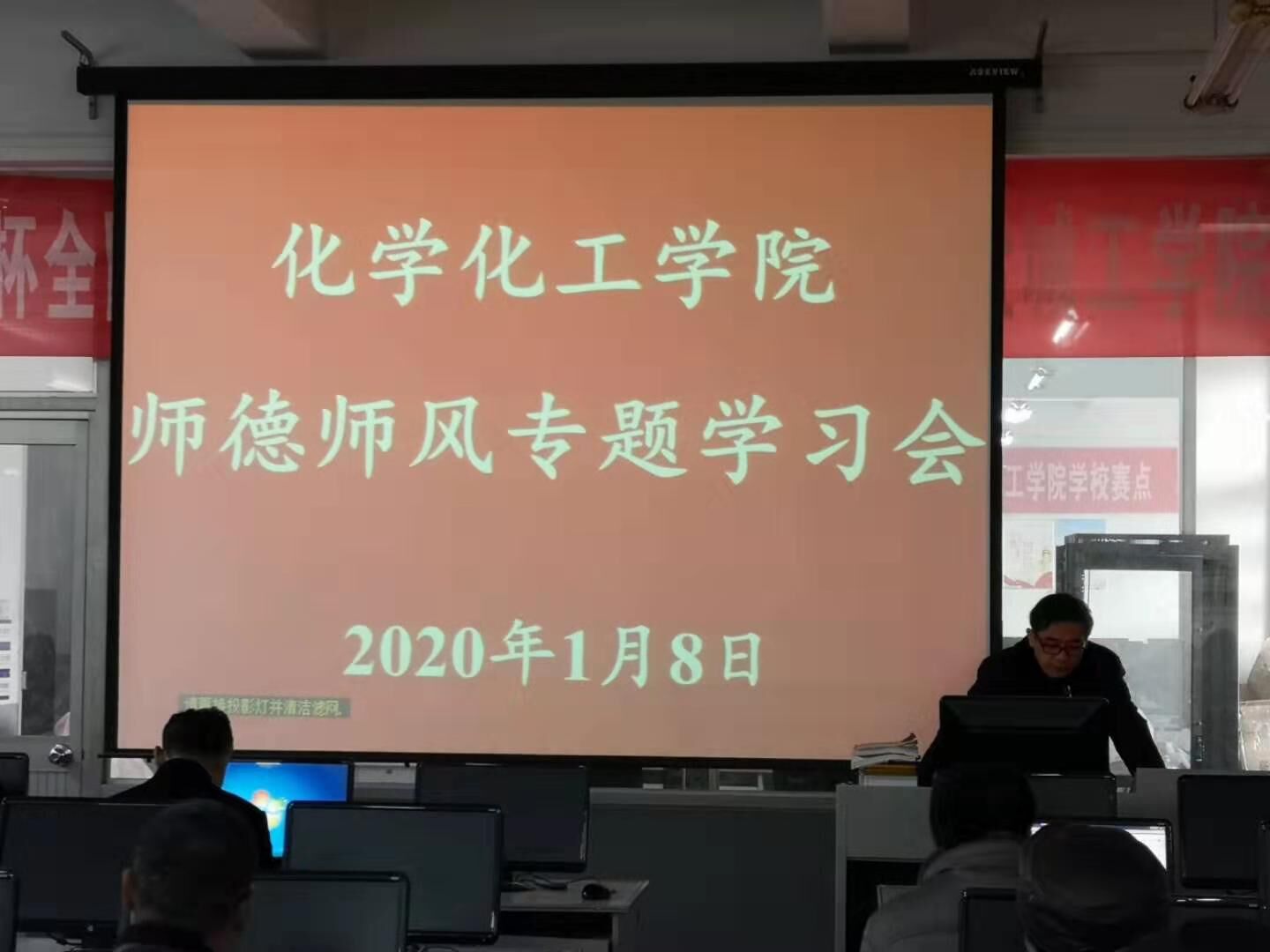2020年1月8日下午,化学化工学院在北校区体知楼二机房召开师德师风专题学习会,学院全体教师参加学习,学院党委书记谢毅敏主持。