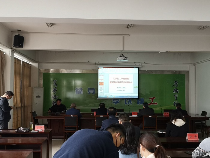 4月8日下午,化学化工学院在北校区化工学院会议室分两批次开展疫情防控知识培训,学院党委书记谢毅敏主持会议,学院党委副书记江滔主讲,学院在盐且符合出入证发放条件的教职工参加会议。