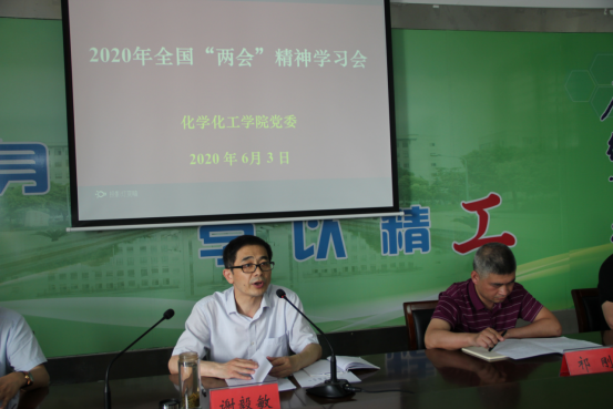 为了深入贯彻学习十三届全国人大三次会议和十三届全国政协三次会议精神,6月3日下午,化工学院在北校区教育超市二楼201会议室召开会议。学院党委书记谢毅敏主持,全体教师参加此次会议。
