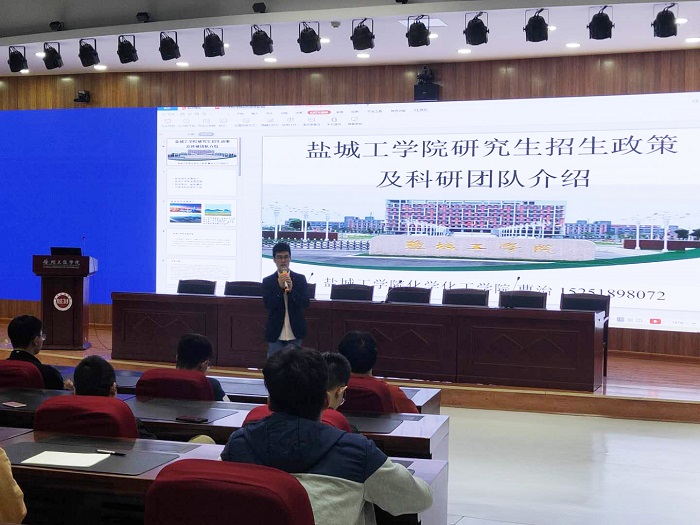 首先两位老师赶赴到由中国教育网和中国教育在线主办的2021年全国研究生招生现场咨询会(江苏徐州场)现场,向参会的考研学生解读我校学科优势、招生专业、报考政策等,帮助考生了解招生政策、吸引考生选择报考我校。咨询会后两位老师分别到徐州工程学院和中国矿业大学徐海学院做宣讲。曹治老师在徐州工程学院作了盐城工学院研究生招生政策及科研团队介绍的报告。针对盐城的地域优势、盐城工学院优越的地理位置和学院发展历史、研究生学科建设情况、招生专业以及奖助政策、科研团队建设等方面做了介绍。张瑞老师在中国矿业大学徐海学院向与会老师介绍了学校发展历史、学科专业及研究生学位点建设等情况。