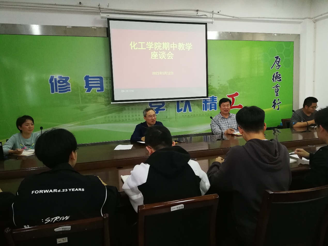 5月12日下午,在学院会议室召开化工学院2021年春学期期中教学检查学生座谈会。院长奚新国、副书记江滔、教科研办主任孙明珠参加本次会议,认真倾听学生心声,与各班学生代表深入交流。