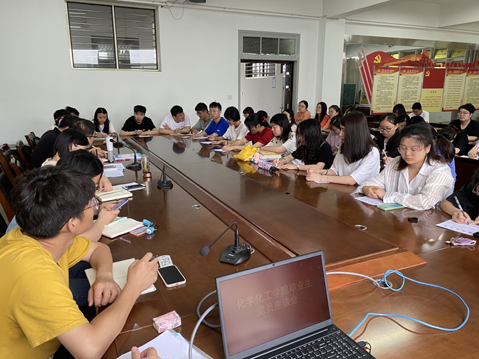 在党史教育深入学习和毕业生离校之际,化学化工学院于6月15日上午,在北校区化工学院201会议室召开了化工学院全体毕业生党员座谈会暨最后一节党课。学院党委负责人、组织员、学生党支部书记参加,座谈会由学院党委书记谢毅敏主持。