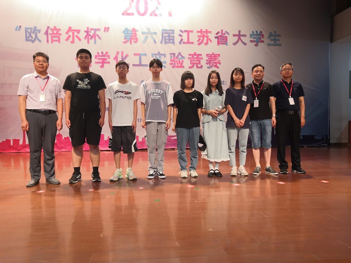 我校化学化工学院分别派出化学和化工两支参赛队参赛。学院领导班子高度重视,由院长奚新国担任领队,杨春红、吴玉芹、曹淑红、冒爱荣和严新等担任化学组指导教师,宋孝勇、郁桂云、吴静、陈亮和葛成艳等担任化工组指导教师,从实验安全、实验理论、实验操作和虚拟仿真等方面对参赛学生进行了系统的培训与指导。经过激烈角逐,丁城同学获化工组特等奖,王萌同学获化工组一等奖,王菲和王为聪同学分别获得化学组和化工组二等奖,祝海玥和宋奥男同学获化学组三等奖。