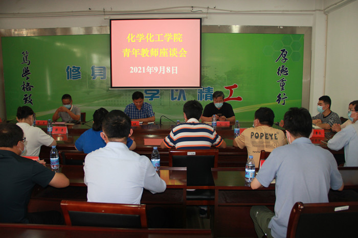 9月8日下午,化学化工学院在北校区大学生活动中心201会议室召开青年教师座谈会。学院党委书记高健主持,院长戴勇、党委副书记江滔和近两年新进的17位青年教师参加座谈会。