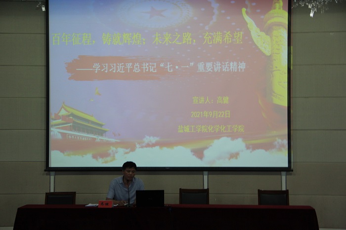 9月22日下午,化学化工学院党委在北校区化工楼报告厅开展学习贯彻习近平总书记“七一”重要讲话精神专题宣讲活动,学院党委书记高健作专题宣讲,学院全体党员教师参加。