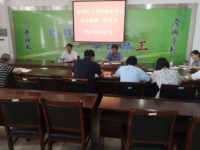 9月27日上午,化学化工学院党委理论学习中心组在北校区学院201会议室,围绕《中国共产党组织工作条例》、《中国共产党党徽党旗条例》以及“两在两同”建新功行动开展情况等内容进行专题学习。校党委第一巡学旁听组组长刘雨龙、成员王丽坤旁听指导。化学化工学院党委书记高健主持会议。