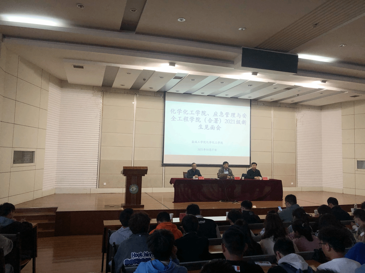10月27日下午,化学化工学院 应急管理与安全工程学院(合署)在北校区化工楼报告厅召开化学化工学院2021级本科新生见面会,学院院长戴勇、学院党委副书记江滔、学院各专业系负责人、新生辅导员以及全体2021级本科学生参加,会议由学院党委书记高健主持。