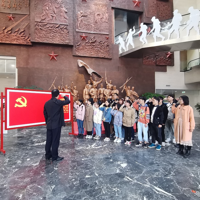 同学们仔细观看了八路军、新四军白驹狮子口会师纪念塔及纪念馆内5个文化展区。一段段影像资料,一张张历史照片,一页页文件史料,讲述着新四军和八路军会师的红色事迹,以及革命战士舍生忘死、前赴后继的革命历程,在场每一位同学都受到一次深刻的党性教育和精神洗礼。站在肃穆的烈士纪念碑前,同学们肃立默哀、鞠躬缅怀,深切表达对革命先烈的崇敬之情。在老师带领下,同学们庄严地举起右手,面对鲜红的党旗,再一次重温入党誓词。