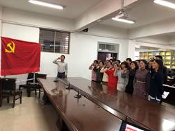 “四重”即重读入党志愿、重温入党誓词、重忆入党经历、重问入党初心。“四亮”即党员亮身份、服务亮承诺、工作亮标准、担当亮作为。首先在支部书记的带领下,全体党员重读入党志愿,重温申请入党时的思想激情与奋斗追求;重忆入党经历,表达自己的坚定信念和为共产主义奋斗终身的决心;结合自身实际,重问入党初心,激励党员以自身的实际行动积极践行实践誓词。随后在仓辉的带领下,党员们面对鲜红的党旗重温入党誓词。庄重神圣的誓词响彻云霄,展现出党员们牢记誓词,遵守承诺的决心。其次谷峰、刘阳庆、孙开涌三名同志对“初心是什么、使命干什么、奋斗比什么”进行了分享讨论。