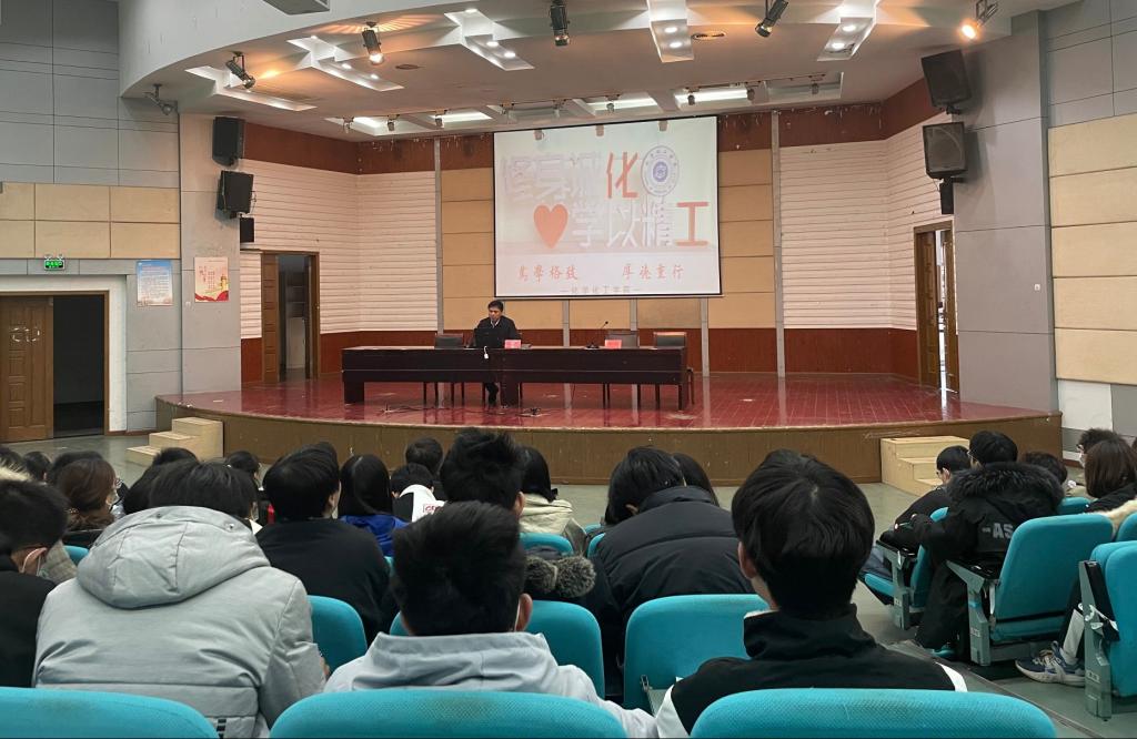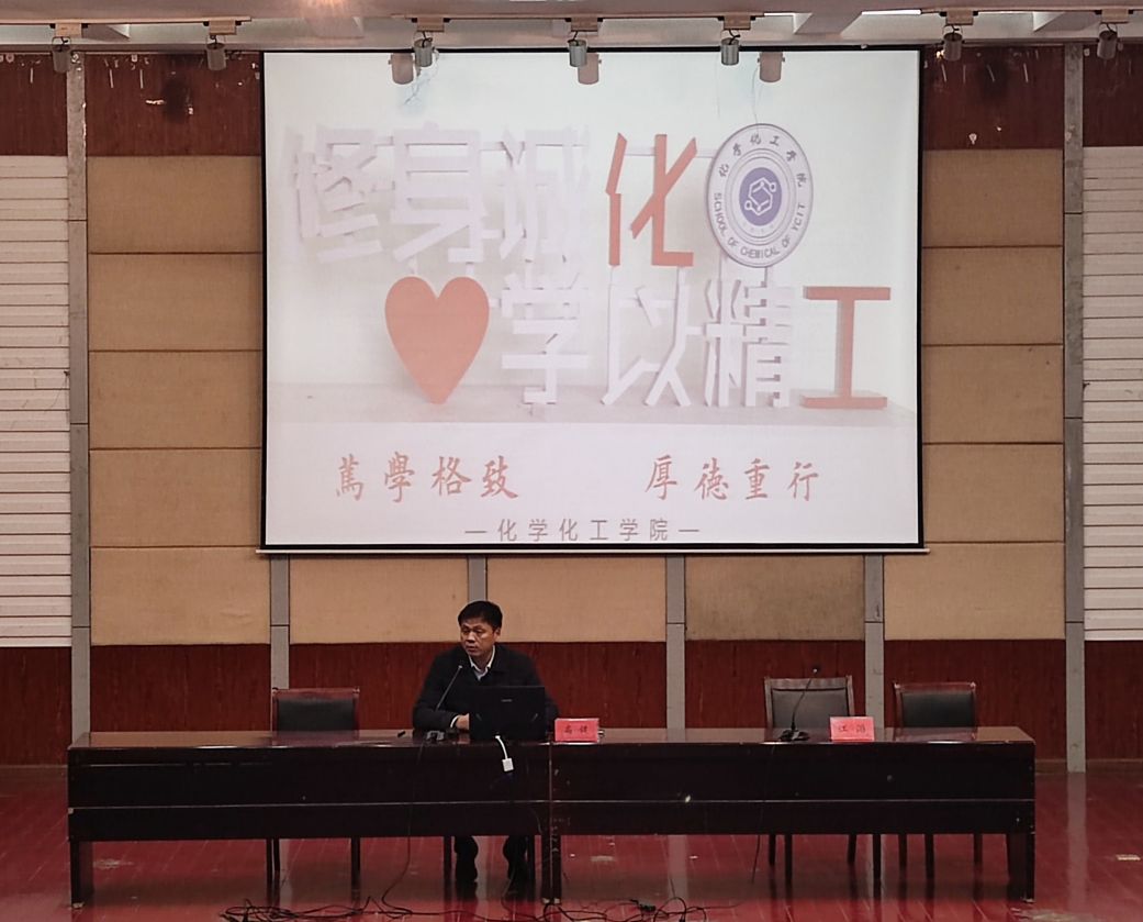 12月1日,在北校区五四报告厅,化学化工学院党委书记高健为新生做“筚路蓝缕,玉汝于成”专题讲座。学院党委副书记江滔主持,新生辅导员及全体新生近400人聆听了讲座。
