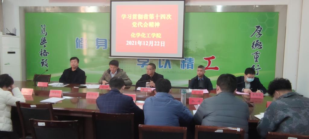 12月22日下午,在北校区化学化工学院201会议室,学院组织召开专题学习会,传达学习贯彻省第十四次党代会精神。学院党委书记高健主持,学院全体教职工参加。