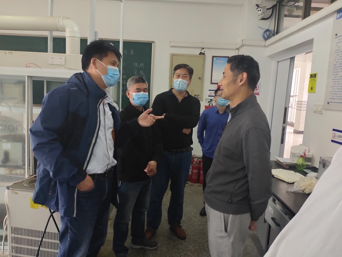 为落实落细学校关于疫情防控期间有序开放实验室的通知精神,创造良好的实验室开放条件,保障教学科研活动的安全有效开展,5月11日上午,化学化工学院党委书记高健、副院长祁刚、副书记江滔等带队持续开展实验室安全专项检查,全面了解了学院实验室的开放情况,重点检查了学院各实验室疫情防控、安全风险管控和环境卫生治理等工作措施的落实情况,并与值班老师进行了深入的交流。