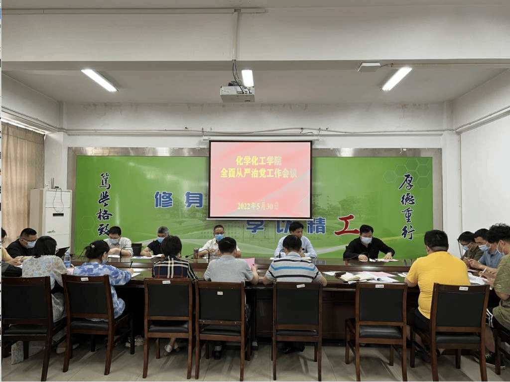 5月30日,化学化工学院组织学院科室负责人、专业系(课程组、实验中心)主任、党支部书记在201会议室召开全面从严治党工作会议。院党委书记高健主持,院党委副书记、纪检委员江滔作了讲话。