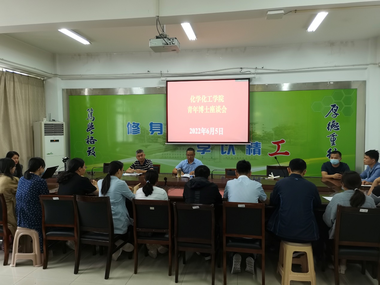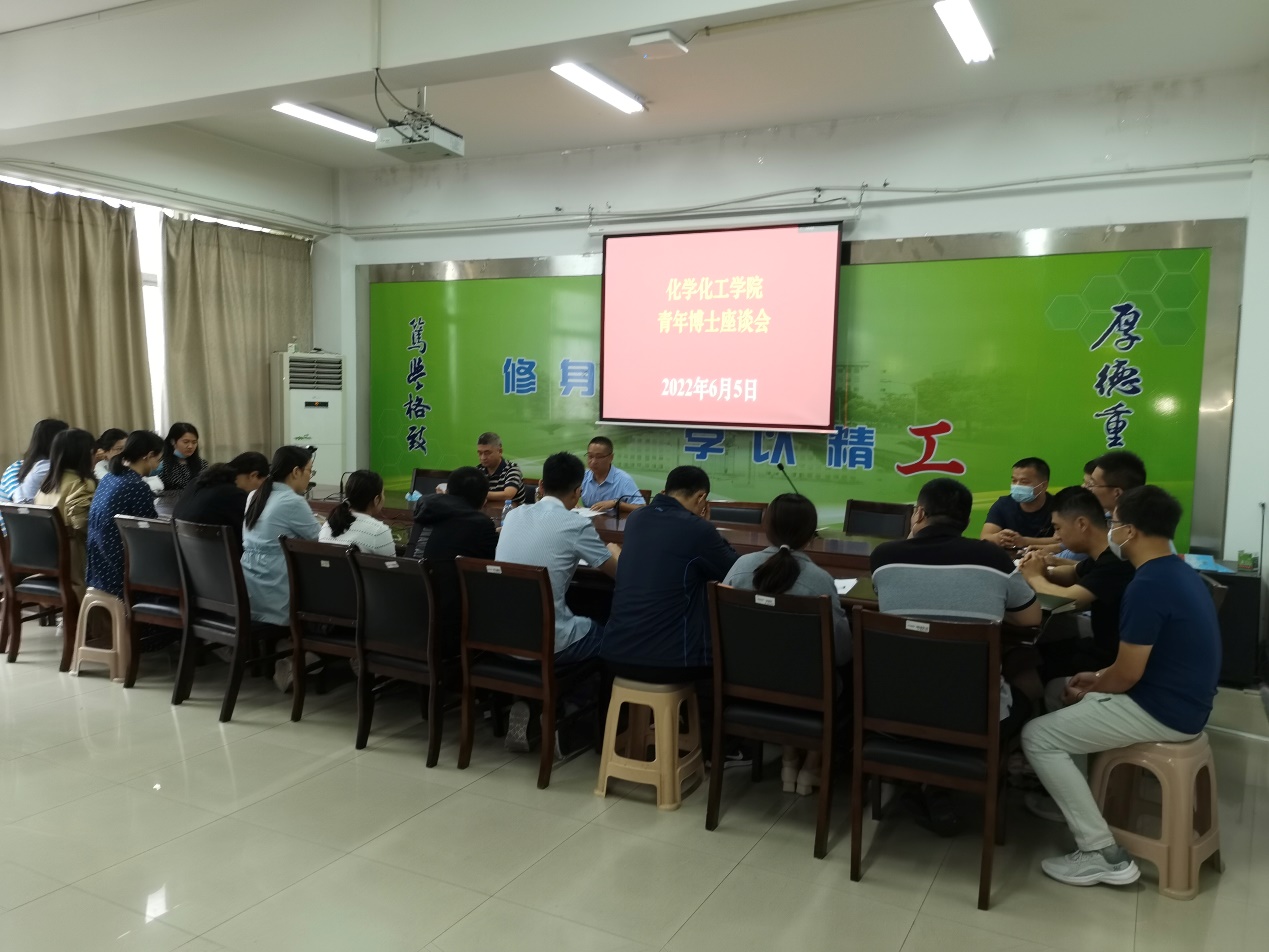 6月5日上午,化学化工学院在北校区学院201会议室召开近三年新引进的博士座谈会。学院院长戴勇主持座谈会,学院副院长祁刚和近三年新引进的博士参加座谈会。