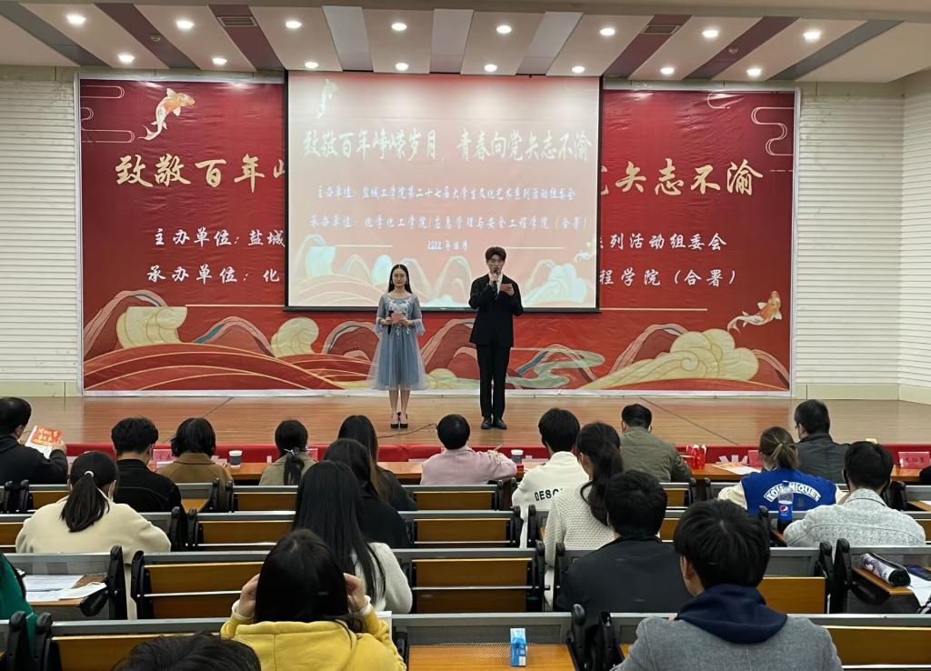为引导新时代青年走进百年团史,追寻信仰之光,勇担青春使命,以实际行动践行党的二十大精神,11月23日晚,由校第二十七届校园文化艺术节组委会主办,化学化工学院承办的“致敬百年峥嵘岁月,青春向党矢志不渝”主题演讲比赛在化工楼报告厅举行。原校工会主席孙琴,校团委书记杨秀丽,校党委宣传部副部长刘荣,校学生处副处长、校心理健康教育中心主任韦春华,化工学院学生工作负责人等担任专家评委,参赛学院派出同学代表担任大众评审。