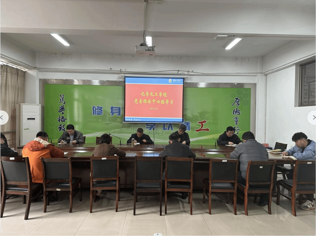 11月28日上午,化学化工学院党委在学院201会议室组织召开党委理论学习中心组专题学习会。院党委副书记庞辉主持会议,理论中心组全体成员参加学习。