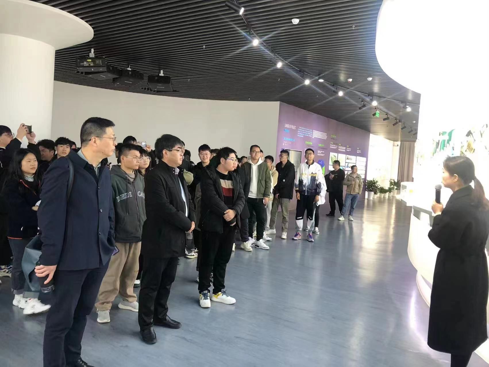庞辉感谢园区为化学化工学院学生搭建的就业实习平台。他指出,化学化工学院与沿海工业园区合作由来已久渊源颇深,双方在校地党建联盟框架下,在横向科研服务、实训基地建设、工程人员培训、应急管理人才培养等领域开展了深度合作,取得了很好的成效。他希望与园区转型升级后的30余家优质企业加强合作, 在产教融合人才培养的过程中,充分发挥政府政策和资源的支撑作用,院校和行业企业资源共享、优势互补,最终实现政府、学校、行业企业、学生四方共赢。最后,他对参加拓岗实习的学生提出三点希望:一是始终保持学习之心,针对自己在工作经验上的空白、实践技能中的盲区,虚心向企业前辈请教,在实习实践中领会教诲、增长才干;二是始终保持实干之心,坚持实事求是,运用专业理论知识创造性地解决实际问题,提升就业创业能力;三是始终牢固树立“生命至上,安全第一”的思想,做到执行纪律无条件、遵守规矩不含糊、守住安全红线不逾越。随后,师生一行来到园区智慧大厅,听取园区智慧管理、污水危废处理、园区车辆管理和新材料新医药项目介绍。化学工程与工艺专业60余名本科生将在园区企业开展为期一周的拓岗实习。