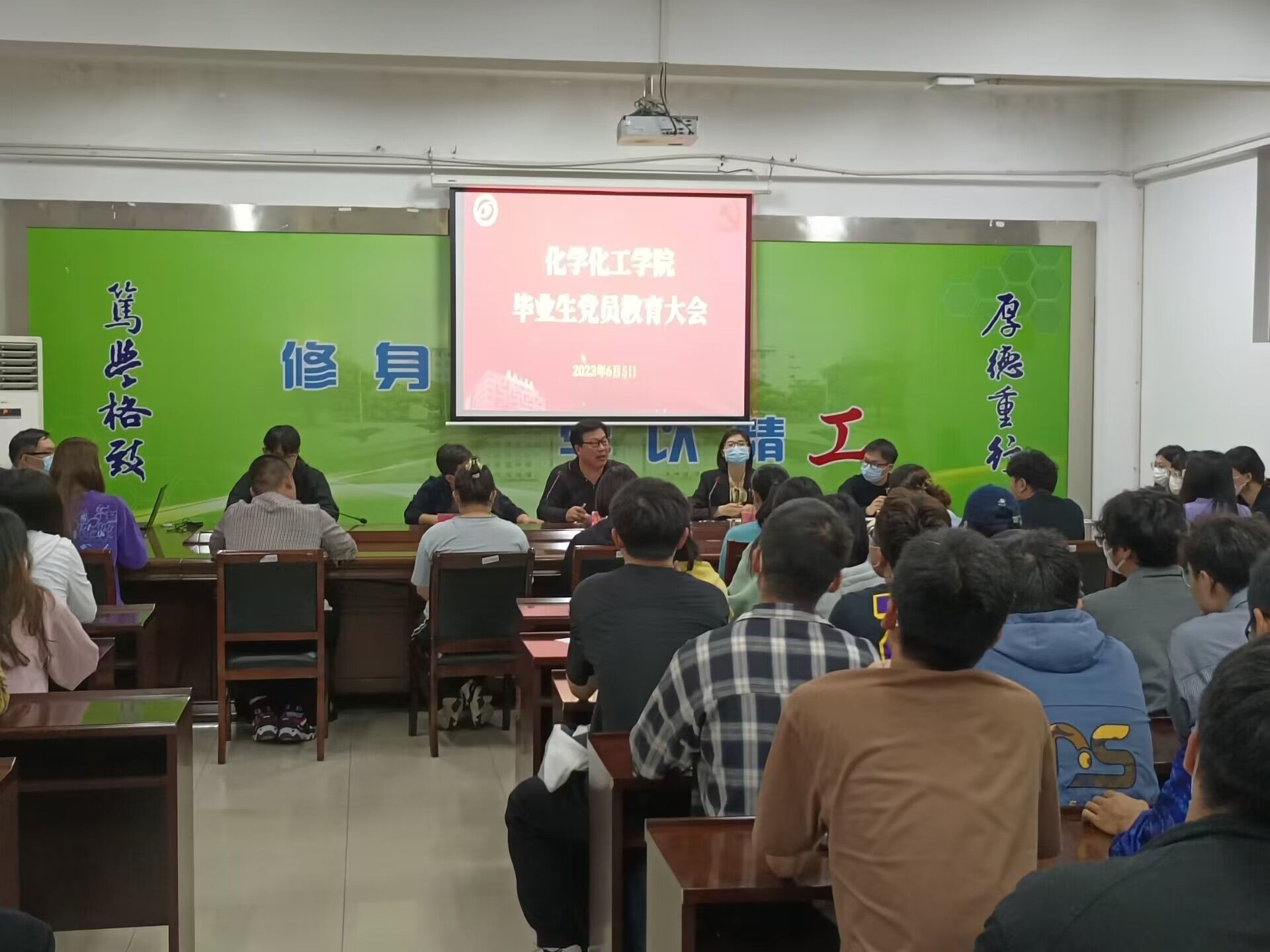 为进一步强化毕业生党员责任意识,激发毕业生党员使命担当,6月5日,化学化工学院在201会议室召开全体毕业生党员教育大会。学院党委副书记江滔为毕业生党员上离校前的最后一次党课,学工办主任李慧主持,学院团委副书记王灿星、各学生支部书记和全体毕业生党员共一百余人参加。