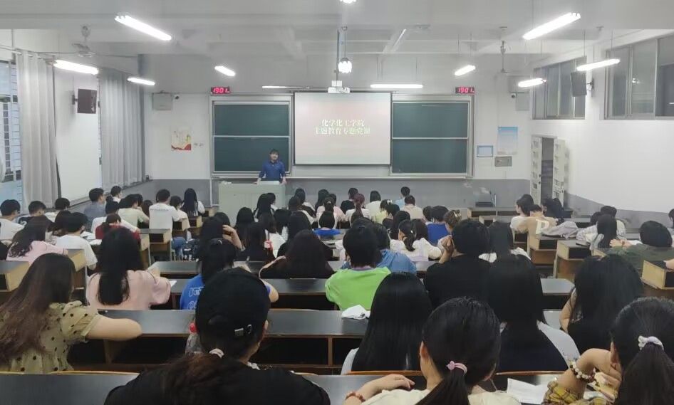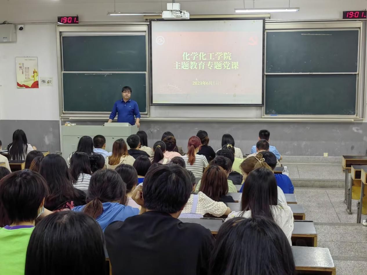 为推动习近平新时代中国特色社会主义思想真正入脑、入心、入行,推进主题教育走深走实,6月14日晚,化学化工学院在体知楼103教室开展主题教育专题党课,本次党课由学院党委副书记庞辉主讲,全体专职辅导员和本科生党员参加。