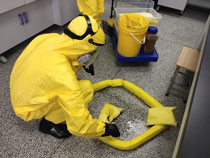 据悉,本次演练为学校第三届“实验室安全文明月”系列活动之一,由化学化工学院承办。演练模拟某实验室1名学生在实验过程中不慎碰倒甲苯试剂瓶,掉落地面造成甲苯泄漏事故,由此展开应急演练。演练科目包括事故发生、信息报送、启动响应、应急处置等,应急处置科目设置警戒疏散、医疗救护和现场处置3个场景。本次演练准备充分、贴近实战、处置成功,达到了检验预案、锻炼队伍、磨合机制的目的。