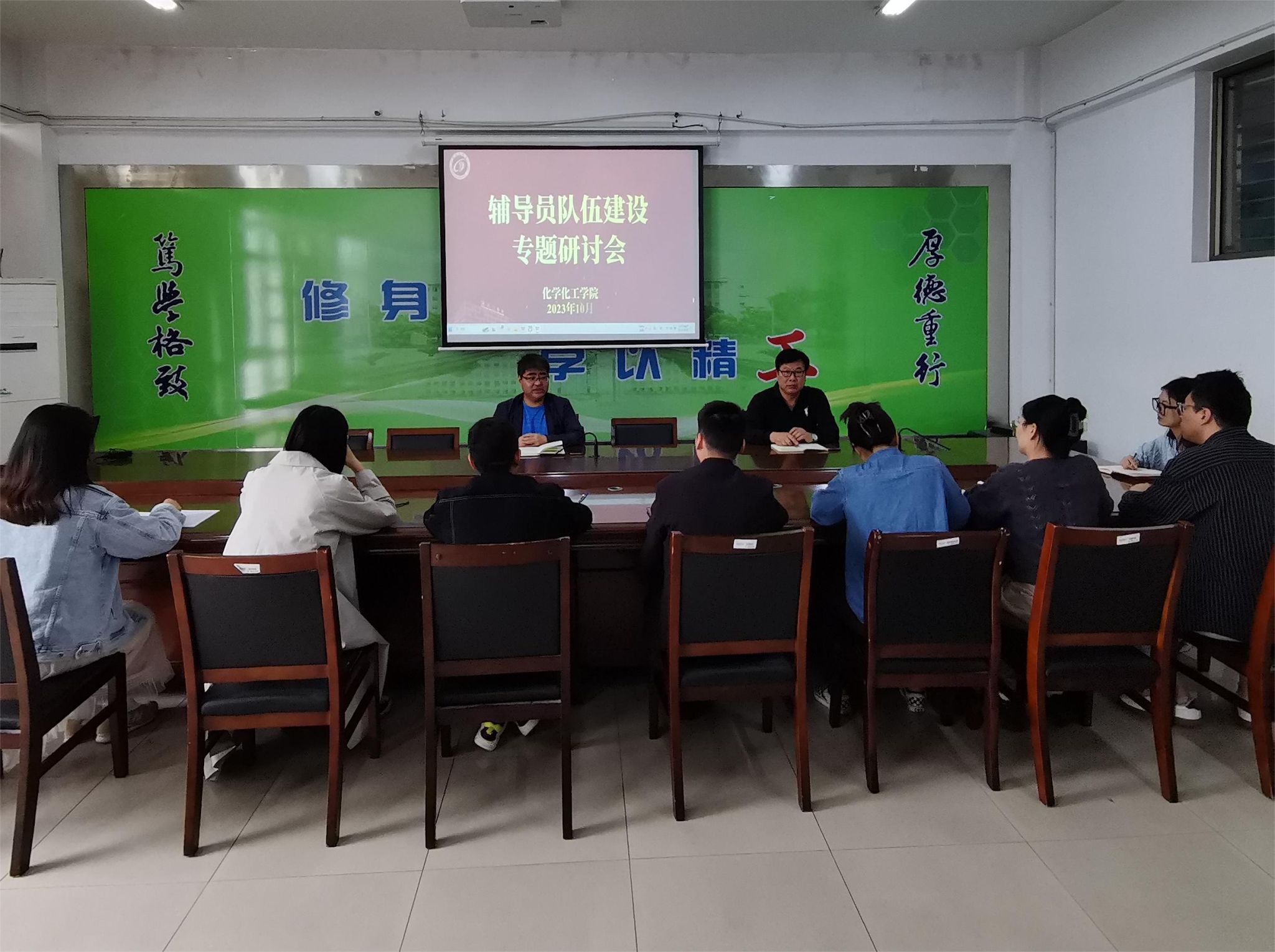 为进一步加强辅导员队伍建设,着力打造一支政治强、业务精、纪律严、作风正的辅导员队伍,10月19日上午,化学化工学院组织召开辅导员队伍建设专题研讨会。学院党委副书记庞辉及全体专职辅导员参加。学院党委副书记江滔主持会议。