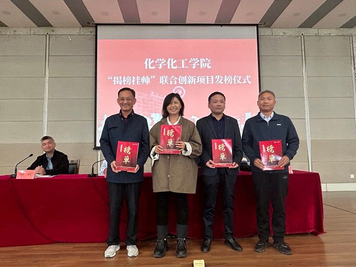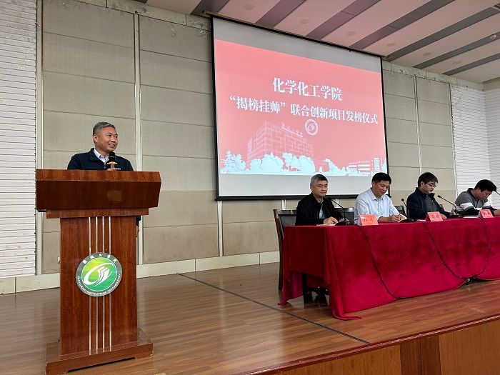 为打造高水平科技创新团队,推动学院学科建设。10月25日下午,化学化工学院在北校区化工楼报告厅举行“揭榜挂帅”联合创新项目发榜仪式。学院邀请科技处处长高健为“揭榜挂帅”联合创新项目发榜,并作指导讲话。学院党委副书记庞辉主持,副院长祁刚、党委副书记江滔和全体教职工参加会议。