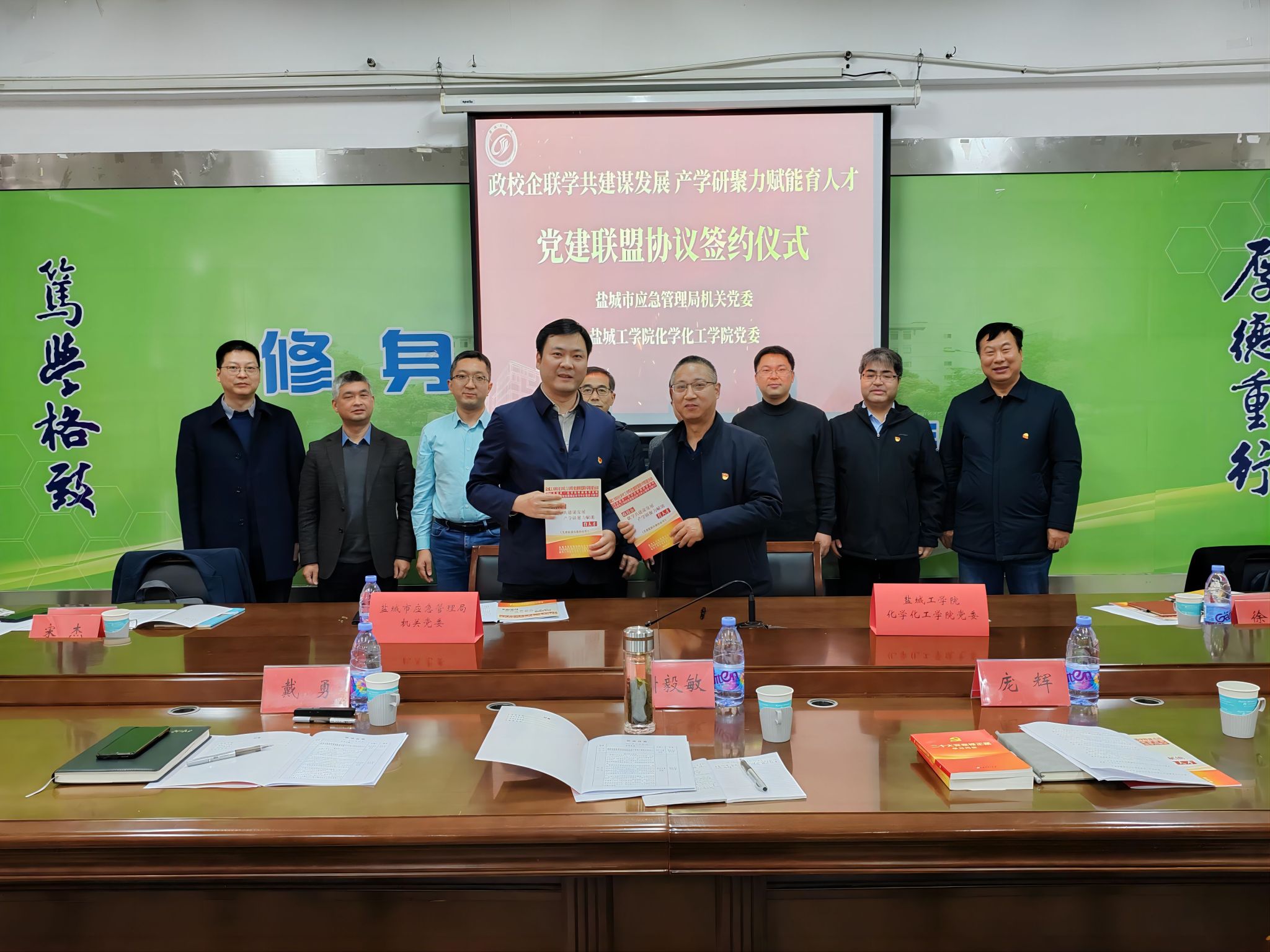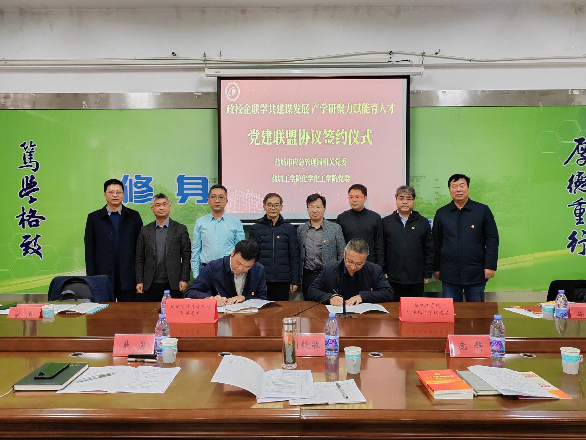 活动中,学院党委和盐城市应急管理局机关党委签订党建联盟协议。根据协议内容,双方将紧密结合工作实际,以合作共赢、共促发展为目标,通过组织联建、活动联办、人才联培、产业联促等方式,开展行业科研攻关、人才培训和智库建设等多方面的合作交流。