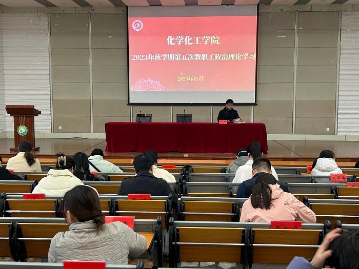 11月29日下午,化学化工学院在北校区化工楼报告厅组织开展2023年秋学期第五次教职工政治理论学习。学院党委书记庞辉主持,学院全体教职工参加学习。