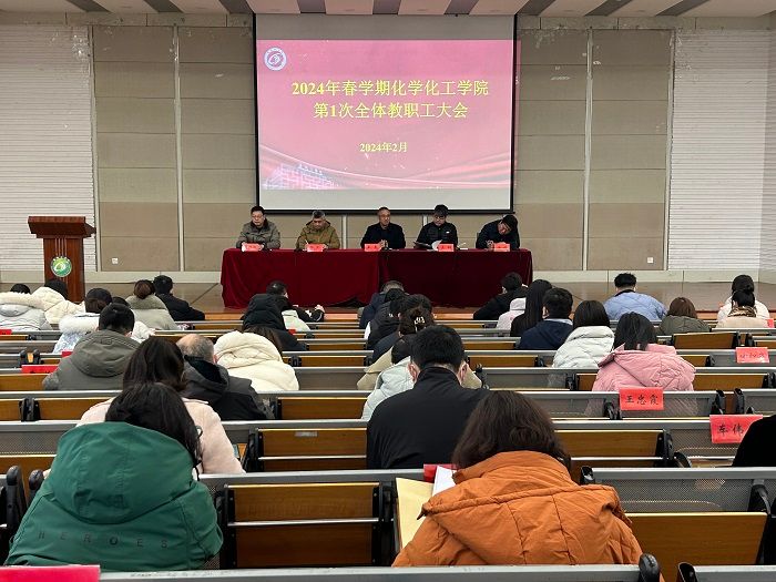 2月28日下午,化学化工学院在北校区化工楼报告厅召开春学期第一次教职工大会。会议由学院院长戴勇主持,全体教职工参加。