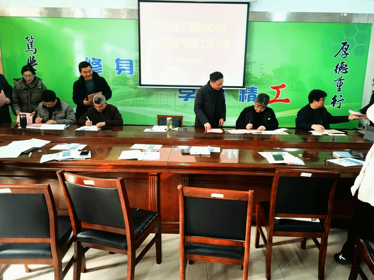 会上,学院领导班子成员分别与科级以上干部、专业系(教研部、实验中心)主任、党支部书记签订了全面从严治党目标责任书。