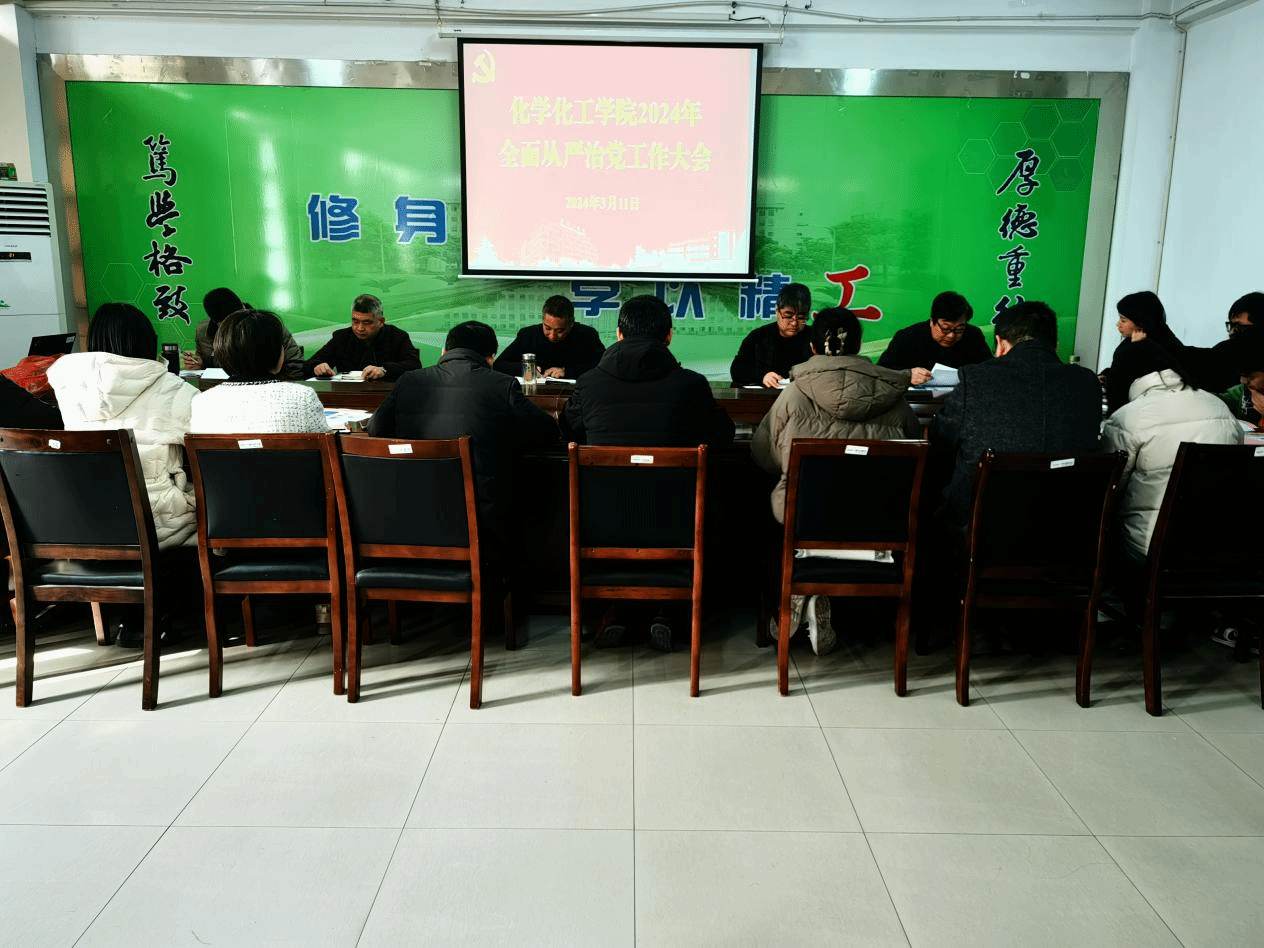 3月11日上午,化学化工学院在学院201会议室召开全面从严治党工作会议。学院全体科级以上干部、专业系(教研部、实验中心)主任、党支部书记出席会议。学院党委书记庞辉主持会议。
