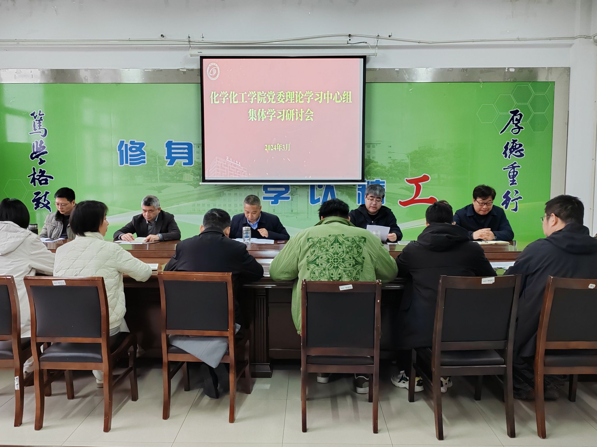 3月25日上午,化学化工学院党委理论学习中心组在北校区化工学院201会议室召开春学期第一次集体学习研讨会。学院党委书记庞辉主持会议,党委理论学习中心组全体成员参加。