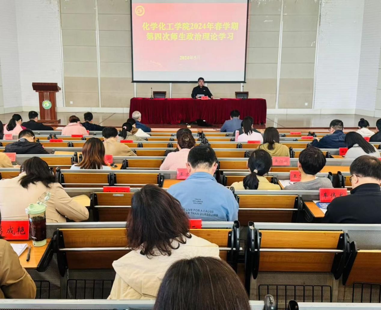 5月8日下午,化学化工学院在北校区化工楼报告厅组织开展2024年春学期第四次师生政治理论学习。学院党委书记庞辉主持,全体教职工、学生党员代表参加学习。