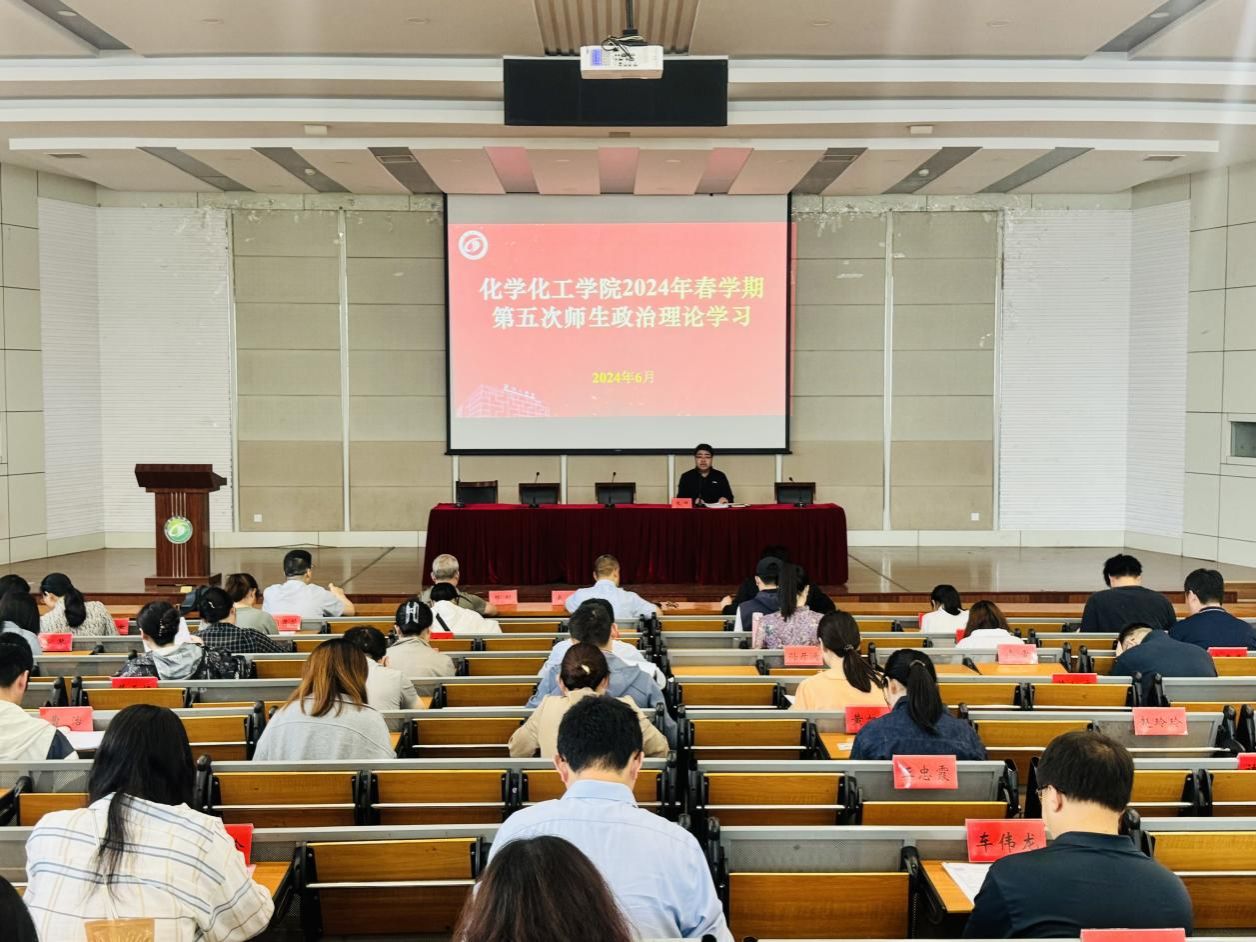 6月5日下午,化学化工学院在北校区化工楼报告厅组织开展2024年春学期第五次师生政治理论学习。学院党委书记庞辉主持,学院全体教职工、学生党员和学生干部代表参加学习。
