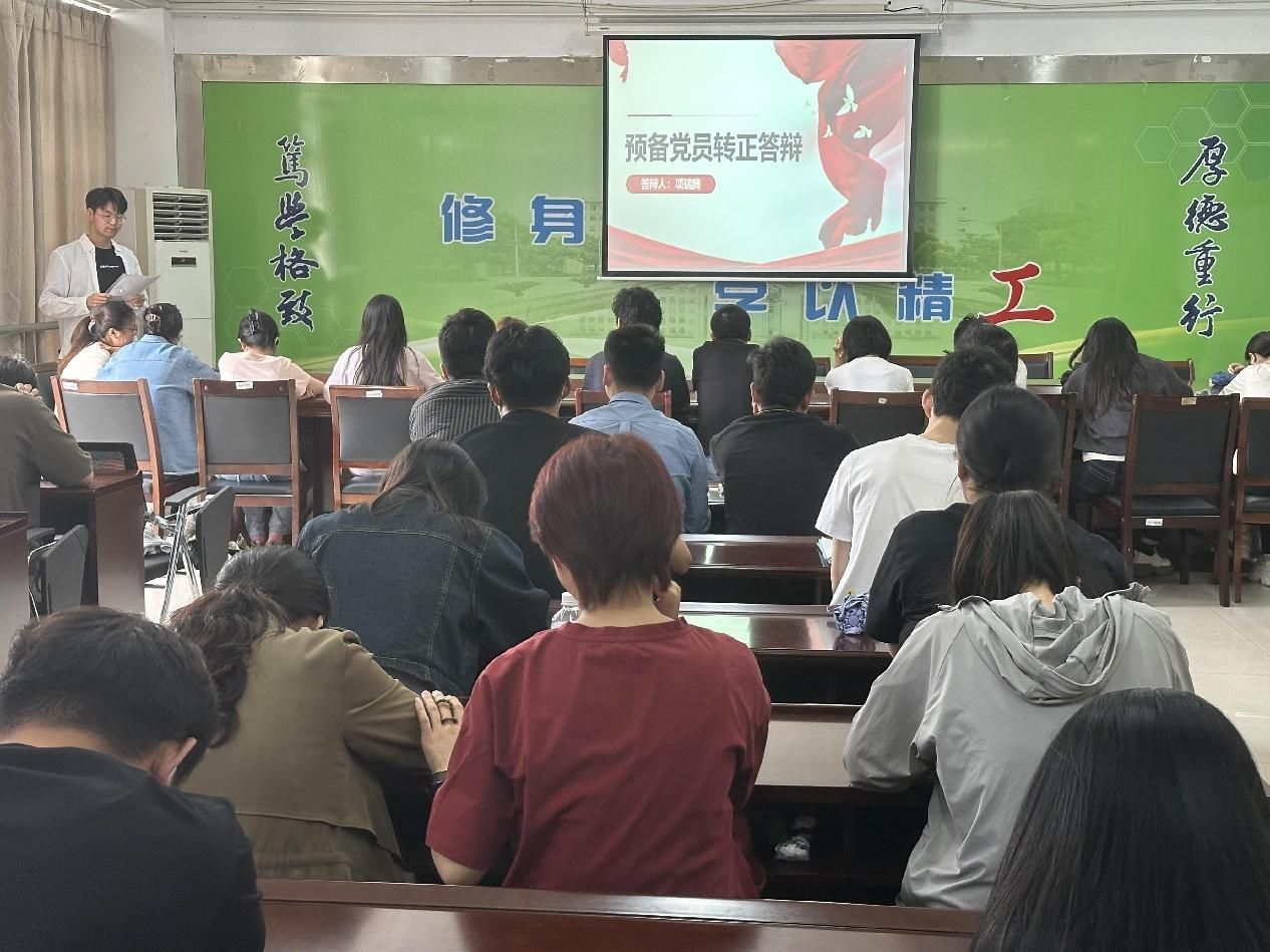 佘雯宇、王子婷等15名预备党员分别从个人基本情况、入党动机、党的理论学习、存在的不足及今后努力方向等方面,依次进行汇报。各位预备党员思维清晰,逻辑严谨,表达了积极向党组织靠拢的决心和坚定不移跟党走的信念。