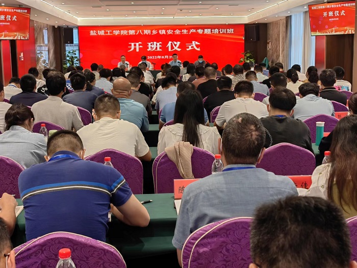 8月29日上午,由江苏省应急管理厅主办,我校承办的盐城工学院第八期乡镇安全生产专题培训班在盐城举行开班仪式。我校副校长王伟,南通市应急管理综合行政执法监督局局长黄鑫出席。仪式由我校应急管理与安全工程学院院长戴勇主持。
